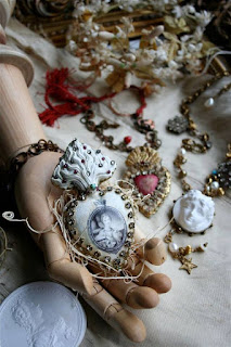 When the things I desire are not within my reach I am inclined to try and recreate them... an assortment of painted Relics & Artifacts resin craft blanks paved in tumbled Garnets, Peridot and antique paste stones along with some of my New Summer 2015 line of Dresden Foil Trims with a few odds and ends of Turquoise and Coral added here and there!